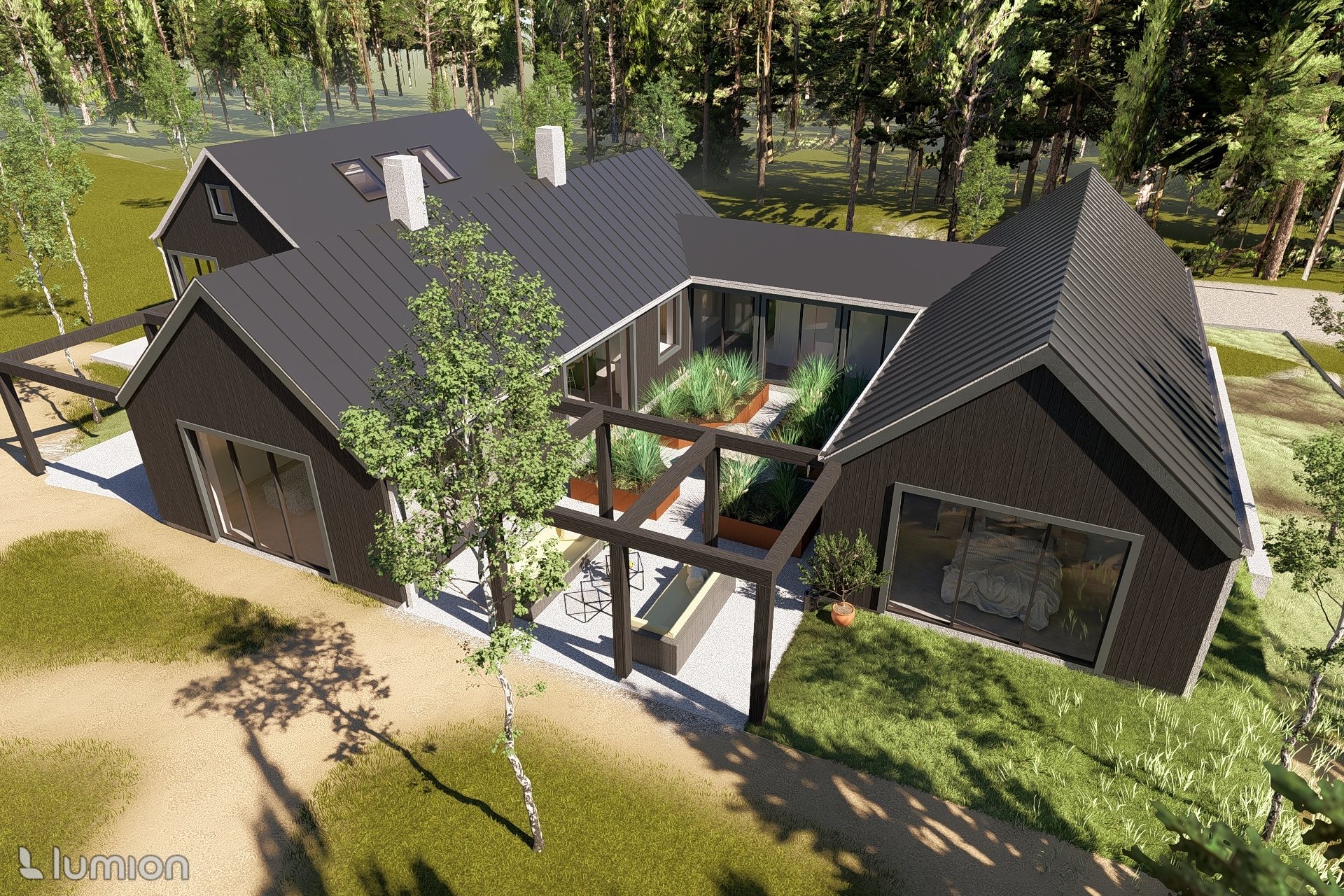 Välkommen till Villa Berg – ett unikt atriumhus beläget i Römora, nära Kallfors, där naturens former och modern design samspelar. Detta hem är en del av det exklusiva projektet “Utsikten”, som består av tre individuellt utformade hus ritade för att harmonisera med varandra och omgivningens lantliga karaktär. Varje hus är noggrant anpassat efter sin specifika tomt, och Villa Berg står stolt på en bergig mark, vilket också gett huset dess namn. Husets hjärta är atriumgården, som omsluter en bevarad sten från tomten – en naturlig mittpunkt och symbol för husets nära koppling till sin omgivning. Gården skapar en unik plats för avkoppling, skyddad men ändå öppen, där gränsen mellan inne och ute suddas ut.