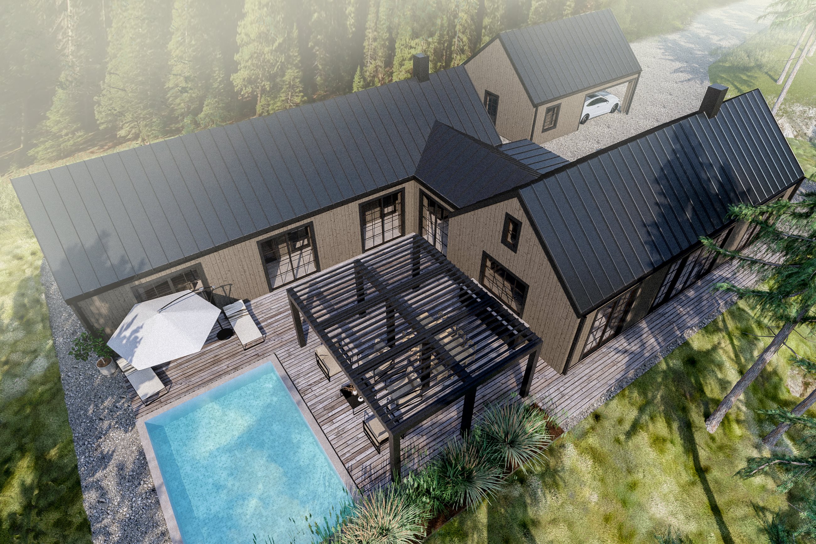 "Villa Dal har skapats med en omsorg om både design och den omgivande miljön. Byggnadens olika volymer sprider ut boytorna och skapar en tydlig uppdelning mellan privata och publika sfärer. Stor eftertanke har lagts på att forma naturliga rumsligheter, där gränsen mellan inne och ute suddas ut. Utomhusmiljöerna är en central del av designen, och huset samspelar med tomtens unika kvaliteter för att ge varje plats en egen karaktär.” - Arkitekt Jorian Egge