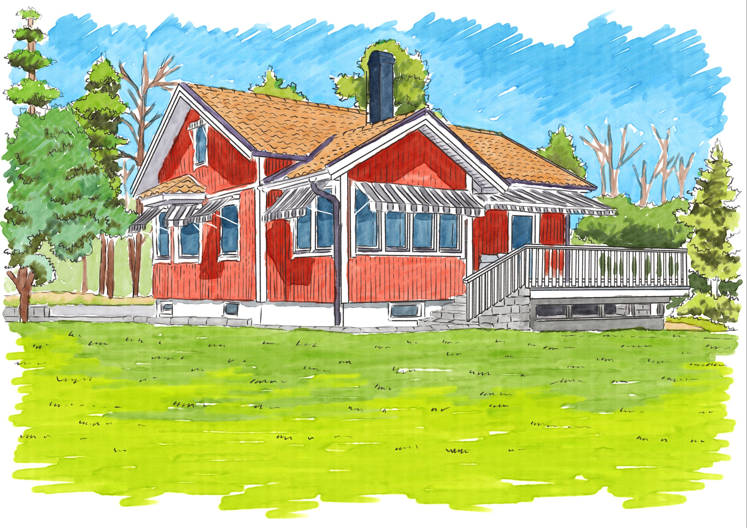 "Vi föll för att huset låg högt, avskiljt men ändå öppet runt bostaden. Den stora gräsmattan för barnen att springa omkring och leka på - även för vuxna som kan spela kub mm - och den stora fina stenläggning, var också något vi fastnade för när vi kom hit första gången. Altanen som ligger i lä och har sol länge på dagarna, är något vi har uppskattat när vi bott här i drygt 11 år. Viksbergs golfbana som ligger inom gångavstånd (även Salems) med resturang och rättigheter, har vi utnyttjat många gånger. Naturreservatet bakom huset med promenader i vacker miljö och fina vägar att springa eller cykla på, kommer vi sakna mycket. Nu har livssituationen fört oss söderut och vi hoppas att en ny familj ska uppskatta boendet här i Viksberg lika mycket som vi har gjort!", skriver Malin och Roiene som bor här nu.