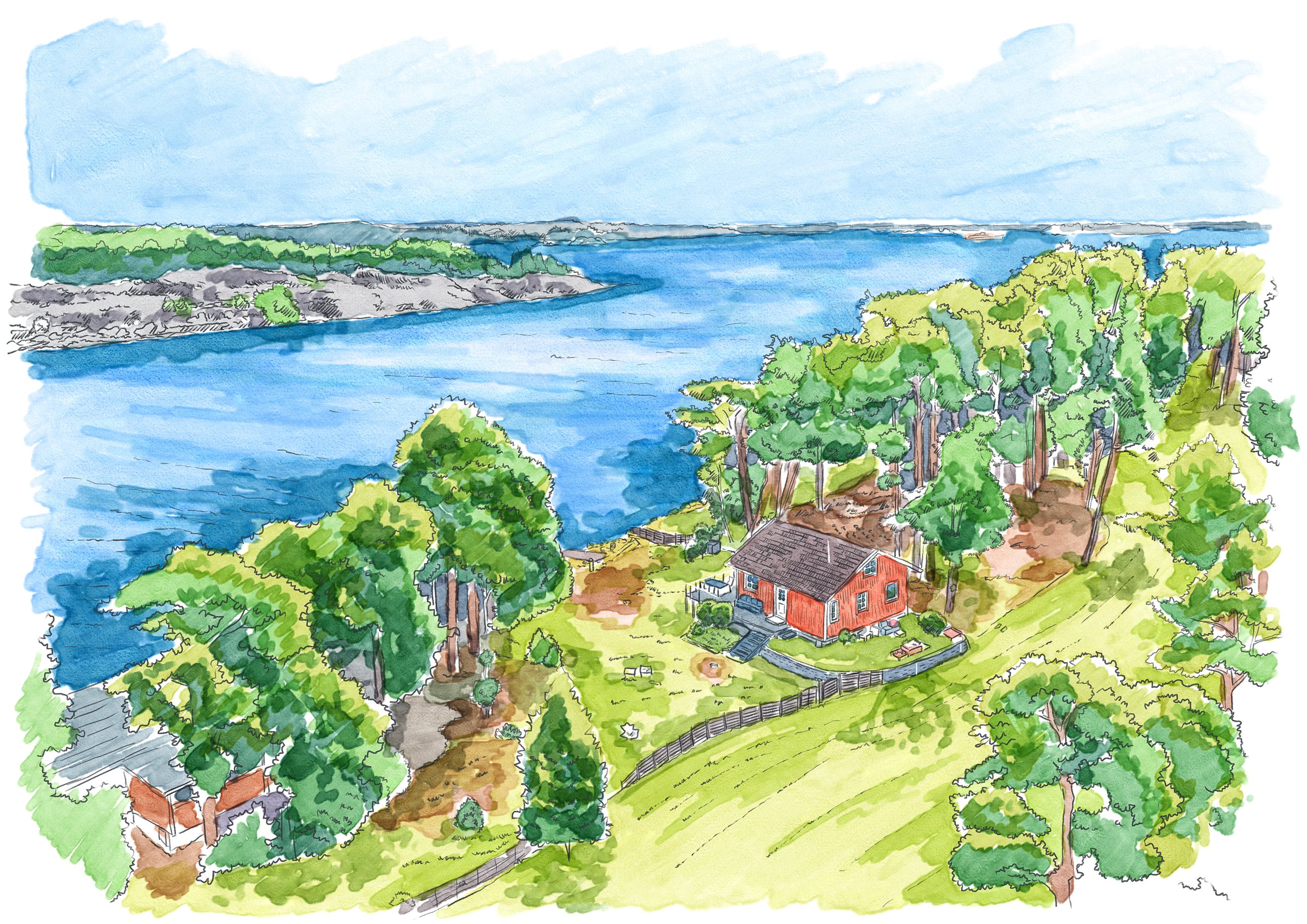 "Det jag och mina döttrar uppskattat allra mest med boendet här är det underbara läget där naturen och havet ständigt är närvarande och att man under ca 9 månader om året i princip är ensam här ute. Att det är lättillgängligt året runt och att vägarna underhålls - och är bra året om - är självklart också något vi uppskattat", säger Peter som har varit här i området sedan barnsben. Det var också han som lät uppföra huset för ca 30 år sedan. "Att det tar oss bara 45 minuter från jobben i Stockholm, har gjort att vi utnyttjat bostaden väldigt mycket året om. I perioder har vi utgått härifrån när vi jobbar under veckorna också", fortsätter Peter. "Är det något annat du vill att jag tar upp i beskrivningen?", frågar jag honom när vi står på altanen utanför kök och vardagsrum. "Den underbara utsikten och känslan av att ha havet 25 meter nedanför huset behöver väl inte förklaras?", frågar Peter och ler lite skämtsamt.