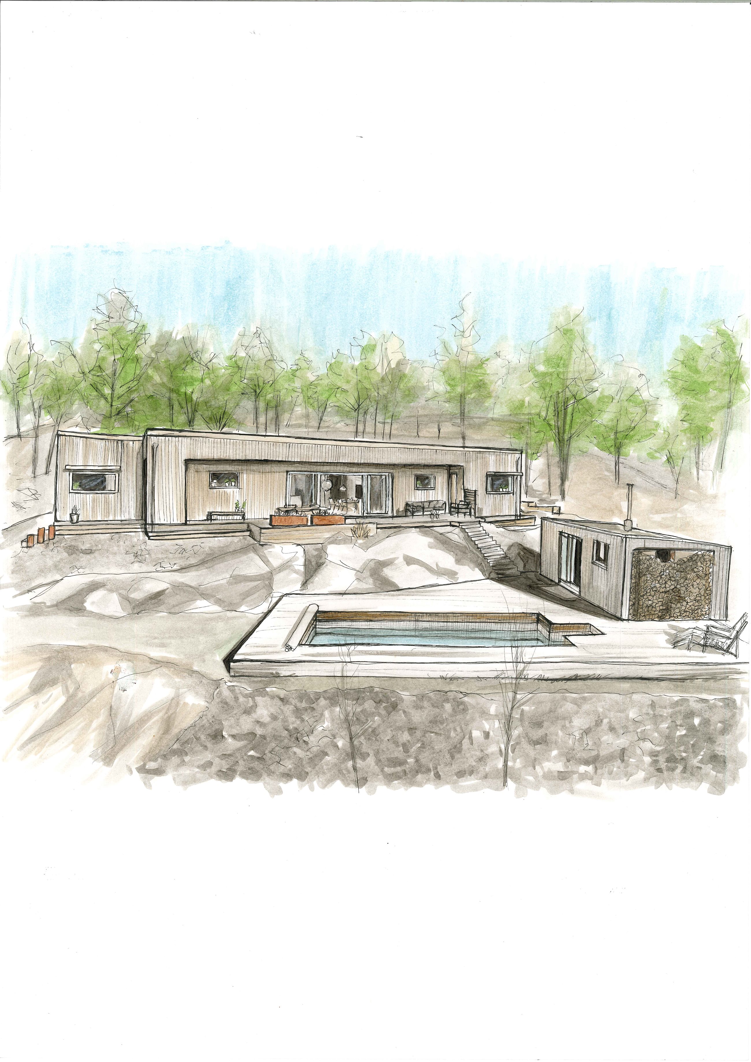 Huset är placerat i ett högt läge - utan besvärande insyn och med sol på tomten hela dagen. En dubbelcarport, med vidbyggt isolerat förråd, håller bilarna snö- och isfria vintertid. Invändigt är det genomgående genomtänkta och påkostade materialval. De putsade väggarna bryter på ett vackert sätt mot det råa intrycket i furuplankorna på vissa väggar och i tak, det oljade och putsade betonggolvet samt det vackert tidlösa och evigt ståndsmässiga intrycket i de delar där man valt Carraramarmor. Tittar man på detaljer, som hur väggarna avslutas med exakthet mot taket (2,70 meter i takhöjd för övrigt!) utan tråkiga skugglister, hur släpbelysningen är placerad på väggarna och under skåp för att skapa stämning och att man väljer att kosta på med Carraramarmor även inne i tvättstugan (som för övrigt har enorma ytor för att enkelt kunna ta hand om tvätten), då förstår man att det här är inget standardhus. En detalj som kokande vatten direkt från kranan (från Quooker) kan väl också nämnas i sammanhanget. Sammanfattningsvis skulle jag vilja säga: man kan bo sämre, men inte så mycket bättre!