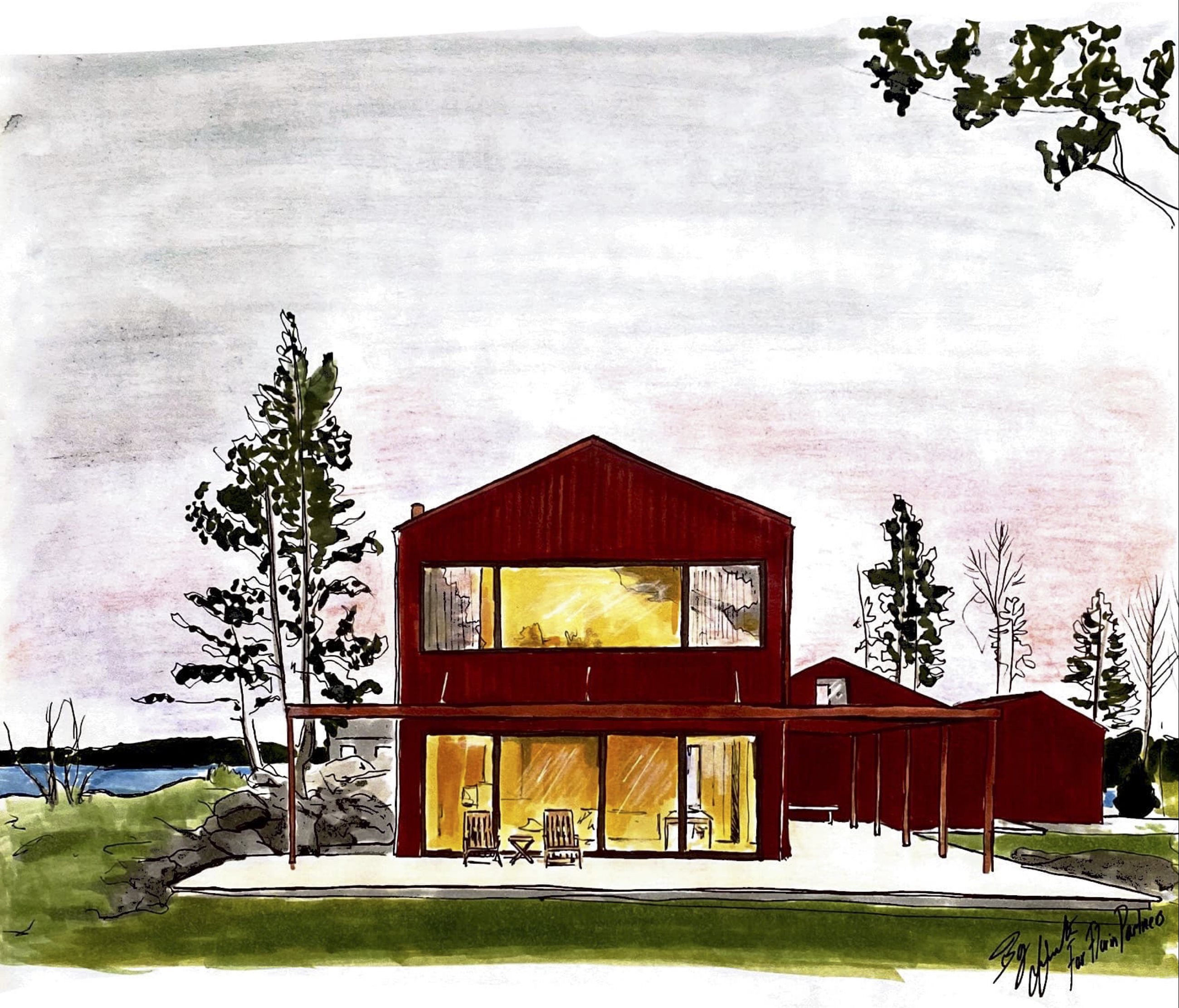 "Från övervåningen på framsidan ser man Östersjön och baksidans panoramafönster målar dagligen upp en ny tavla över naturens skiftningar - det bästa av två världar!"