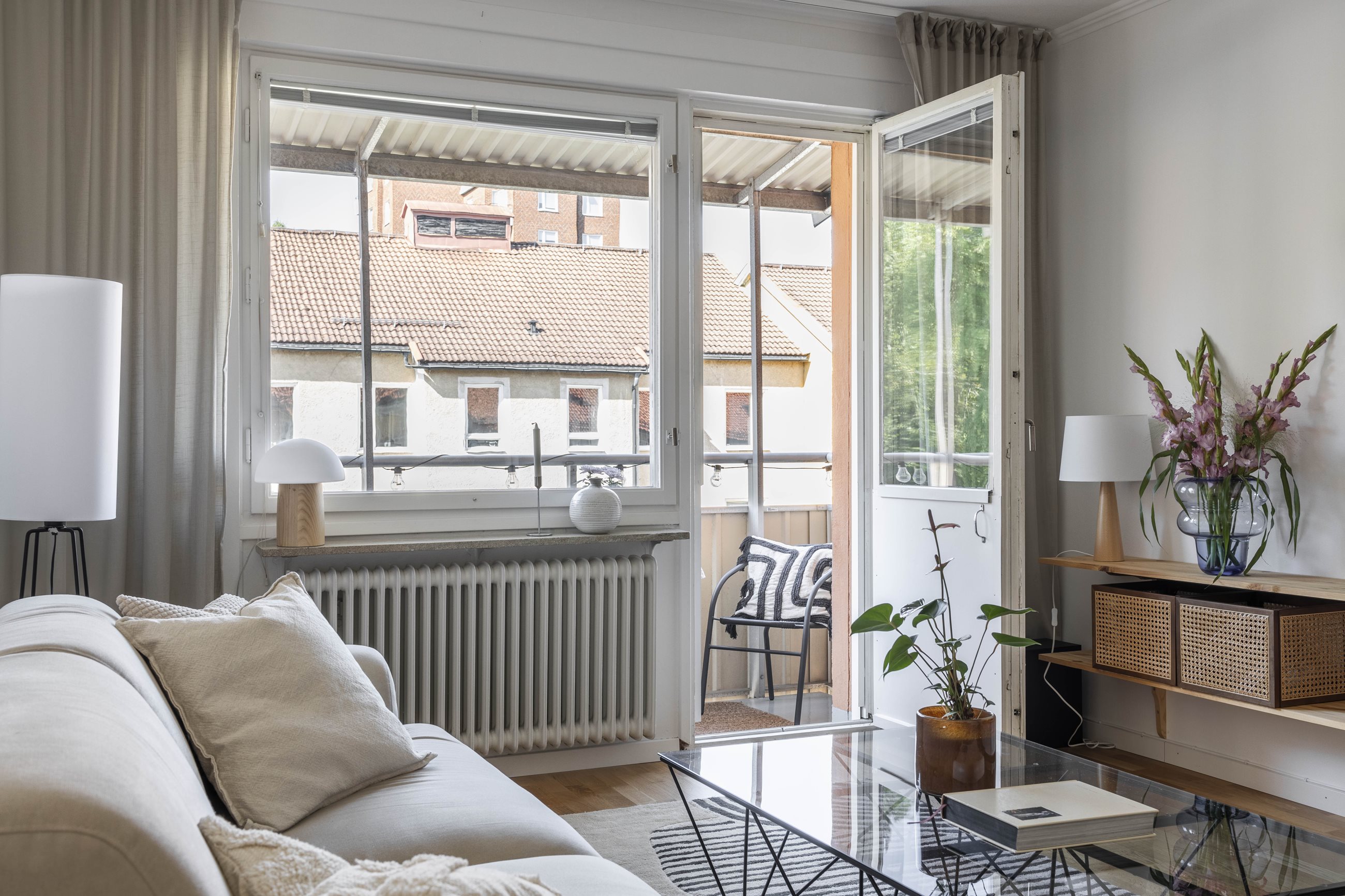 En kort promenad från stadens utbud av butiker, restauranger och kultur ligger denna tvårumslägenhet högst upp i huset. Bostaden erbjuder gott om förvaring, såväl i lägenheten, som i de två förråden. I anslutning till vardagsrummet finns även en balkong i optimalt västläge. Kanske har du en pava vin i vinkylen att njuta av under sensommarkvällen? I lägenheten finns det gott om plats för umgänge - både i det väl tilltagna vardagsrummet och det rymliga köket. Kortfattat kan man konstatera att det mesta, på de flestas, önskelistor finns att tillgå på dessa 52,5 kvm!