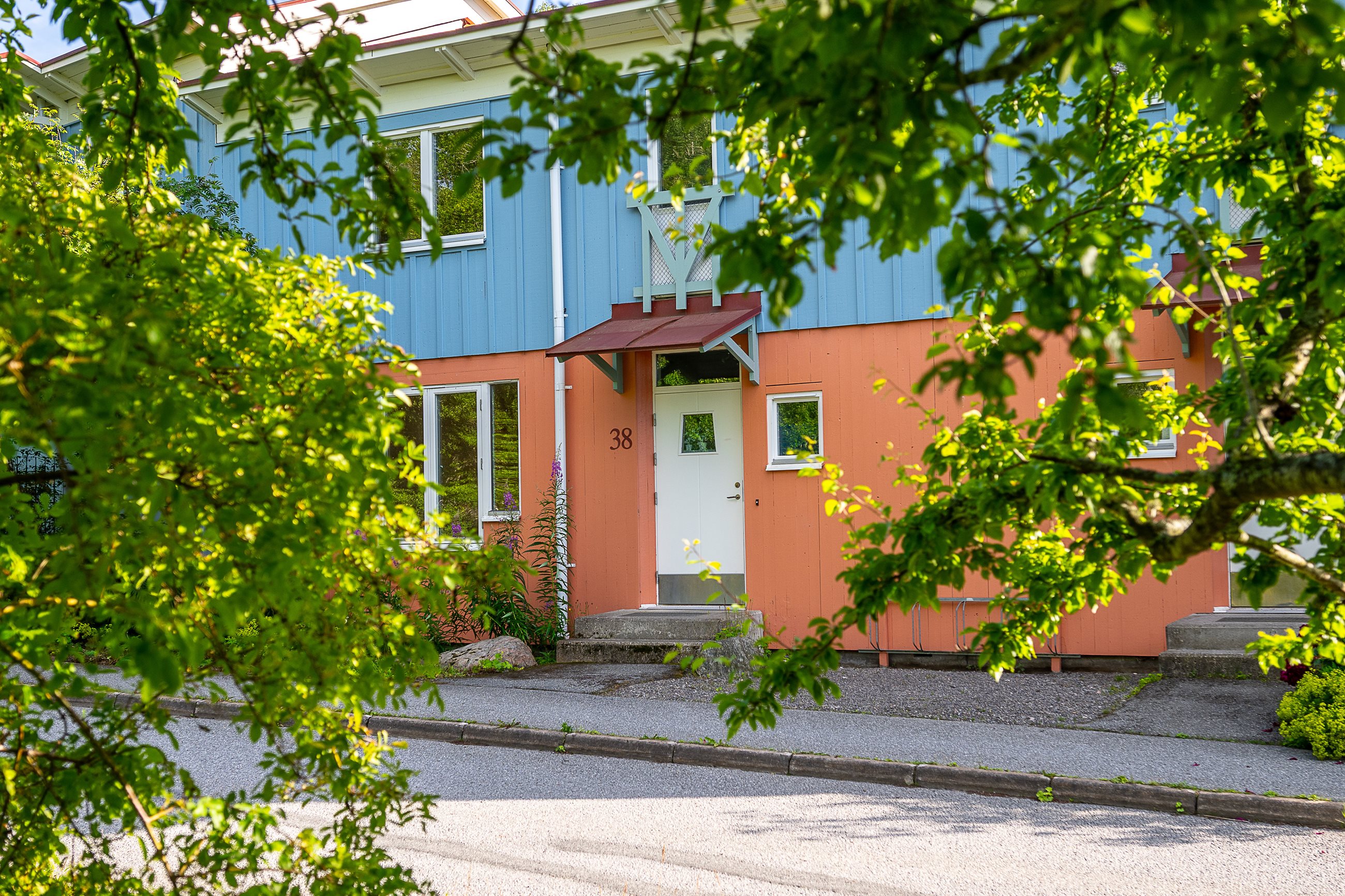En trappa upp väntar tre sovrum i olika storlekar, alla på samma plan. Direkt till vänster i hallen finns en praktisk förvaringslösning med både under- och överskåp. Solens strålar från takfönstret sipprar in och hela det övre våningsplanet känns oväntat ljust och rymligt med takhöjd upp till nock. Två badrum, ett på varje plan, ett med dusch och ett med badkar. En enkel men ovärderlig detalj för att få vardagens logistik att flyta lite mjukare. Här finns även fri tillgång till parkering, och närheten till E4:an gör pendlingen smidig. Även kollektivtrafik trafikerar området.