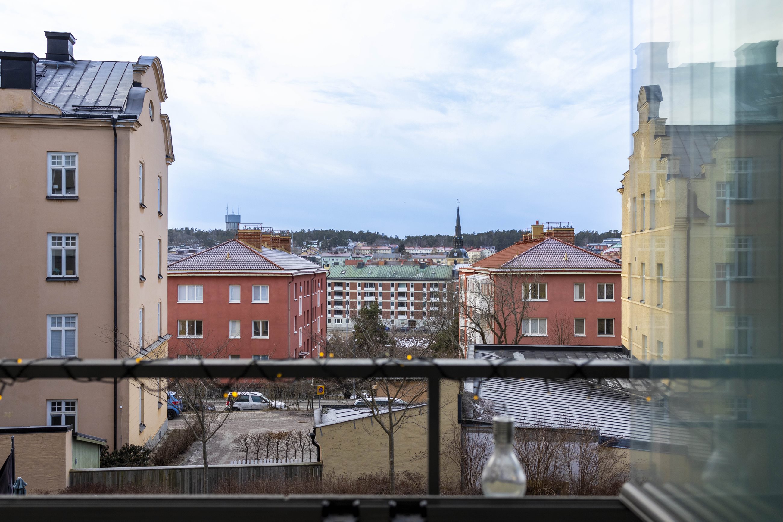 Kan det här vara en dag i ett framtida liv? Varmt välkommen att höra av dig eller boka in dig på en visning på vår hemsida. Det är svårt att sammanfatta alla värden i denna lägenhet som är både välplacerad och välplanerad. Det som nuvarande ägare har uppskattat mest är utsikten från balkongen mot kanalen och kyrkan med sitt klocktorn, läget med 10 min promenadavstånd till centrum och tillgången till garaget som nås enkelt via hissen. I föreningen finns miljörum, cykelförråd och en gemensam uteplats och gräsmatta på baksidan med tillgång till bord, stolar, parasoll och grill.
