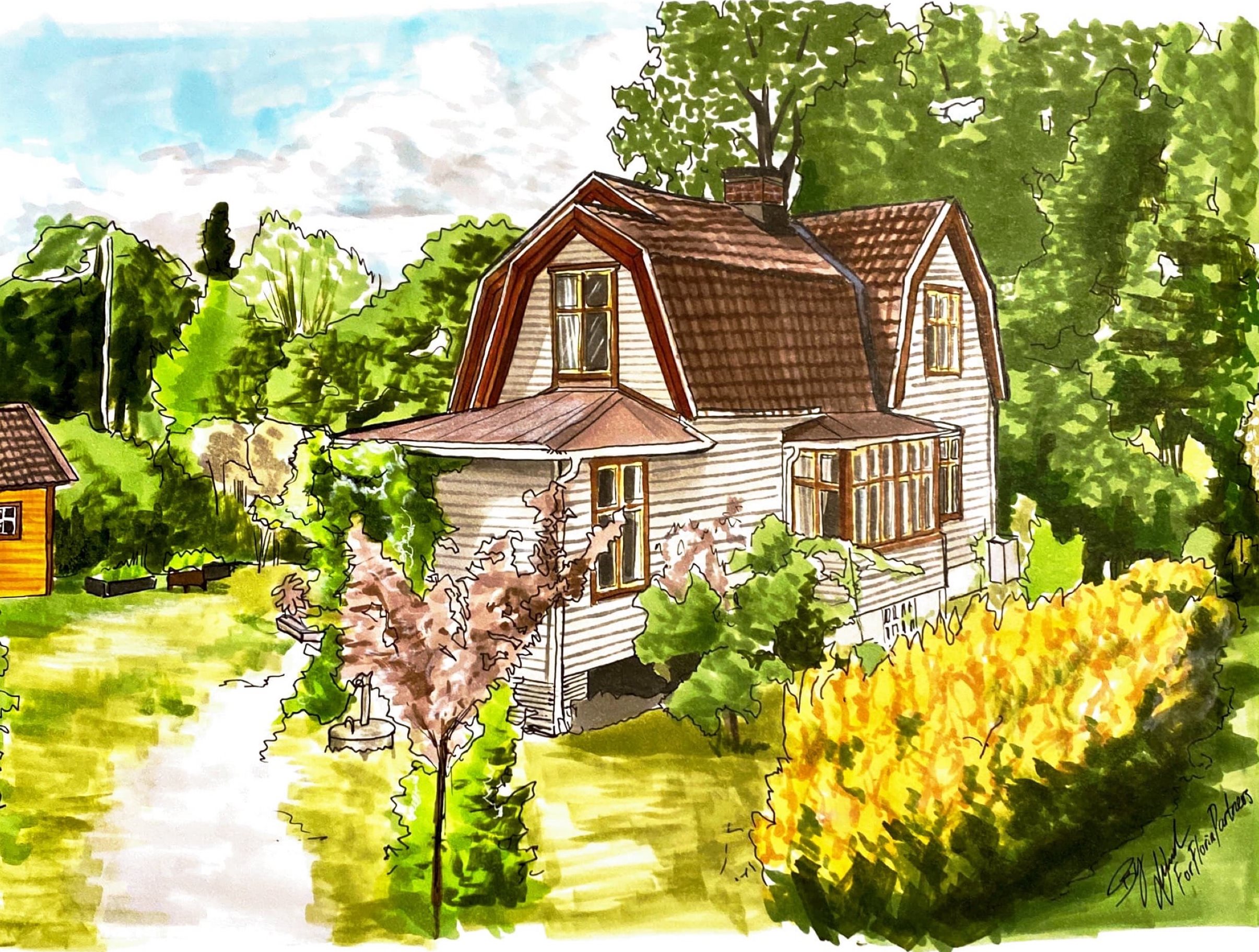 2008-2014 tillbyggd kallhall/förstuga. Nytt kök installerades med bl a en gasspis från Ilves (diskmaskinen utbytt 2023).