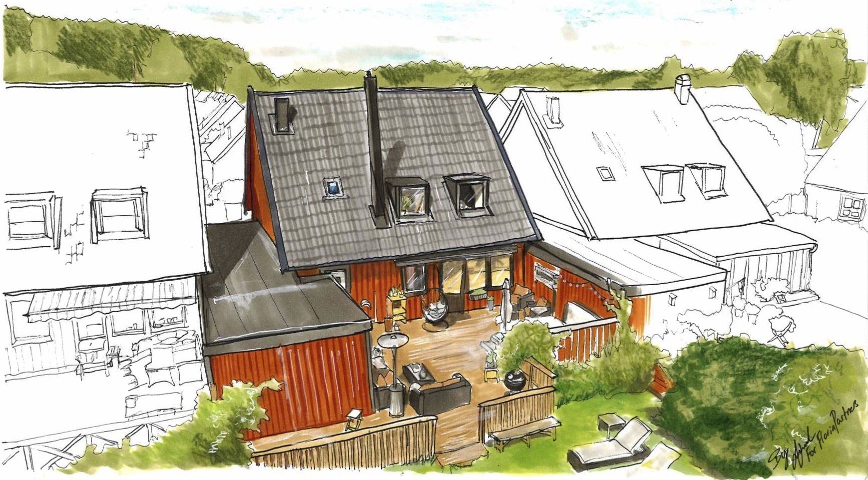 Så småningom kommer den här pärlan att erbjudas till försäljning. Det är från början ett klassiskt 70-tals hus som genomgått omfattande renoveringar och ombyggnationer genom åren. Här kan framtida nya ägare njuta av genomgående uppdaterade ytskikt - såväl ute som inne, altaner på båda sidor - den på baksidan med SPA-bad. Här finns bl a ett isolerat gästhus för tonåringen eller någon annan (uthyrning?), fräscha badrum/tvättrum och ett uppdaterat kök med matplats (var ursprungligen ett ytterligare sovrum) hittar ni också här. En kakelugn i vardagsrummet finns också att värma både kropp och själ kulna höst- och vinterdagar.