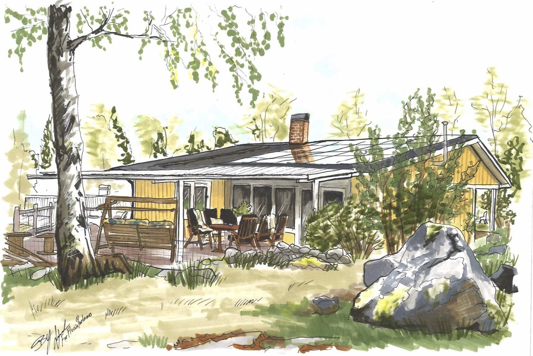 "Vi övertog fastigheten 2013 från Mirjams föräldrar som ägt huset sedan 1996. Efter övertaget renoverades huset 2013 och har sedan dess varit vår bostad. Våra 4 barn och 10 barnbarn har haft fantastiska träffar här under somrarna, men nu ska vi flytta norrut i Sverige", skriver nuvarande ägare.