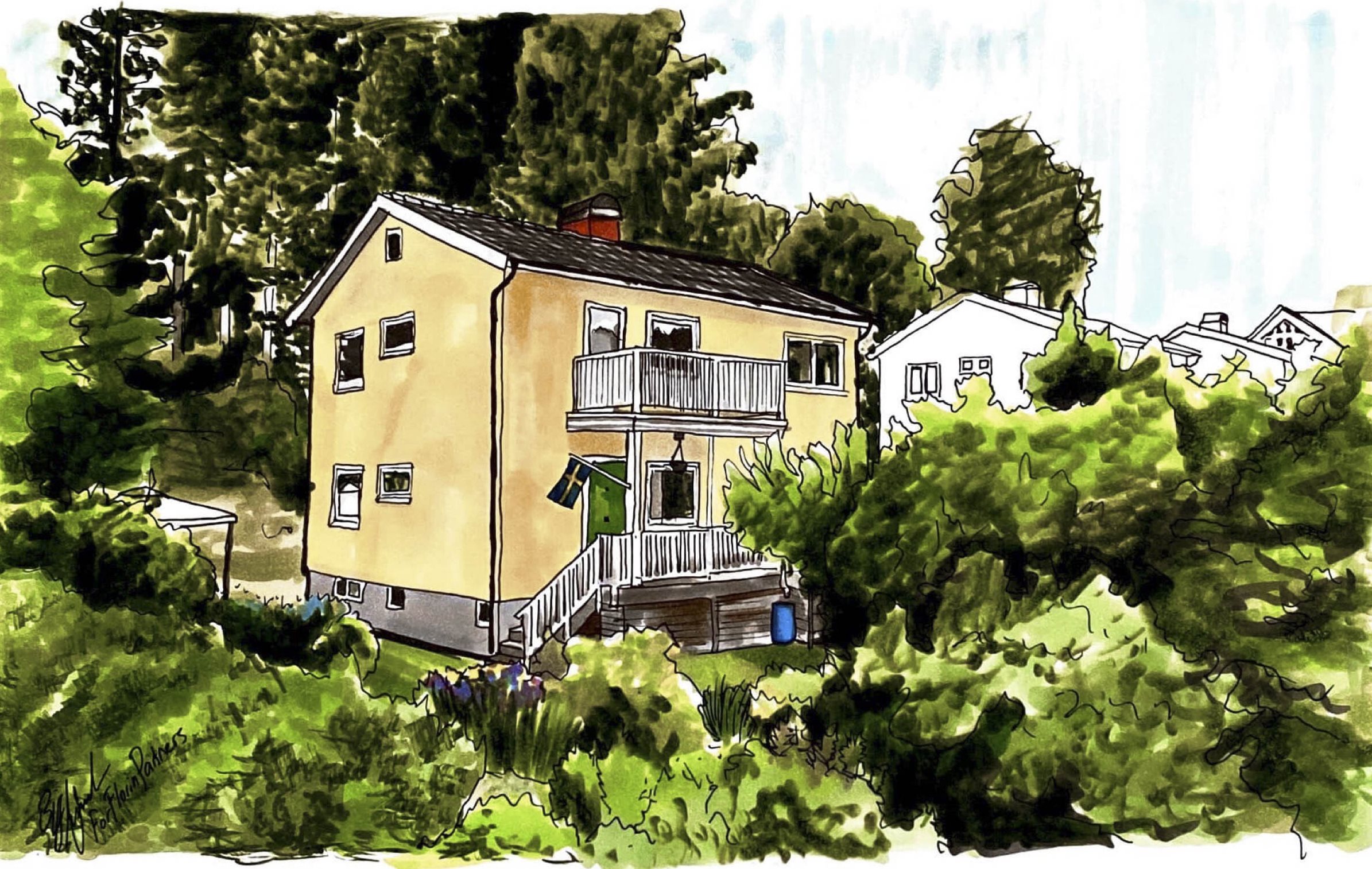 Huset är välisolerat som medför att ljud mellan våningarna är mycket begränsade, vilket gör att vi sällan har stört varandra. Huset ger och har givit en känsla av både trygghet och frihet. Vi har verkligen bott, levt och älskat detta hus och ja, faktiskt hela platsen där huset med trädgård och grannar finns. Vi ser med glädje fram emot att lämna över stafettpinnen till nästa glada familj, som kan plocka sin frukt och förvara den långt in på hösten i "vinkällaren" (som den används till idag), för att bjuda på en väldoftande äppelpaj i det glada köket i det vänliga huset till sina nära och kära, avslutar Anna.