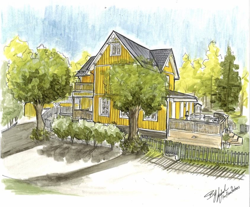 2018-19 Fasadpanelen utbytt och tilläggsisolerad.